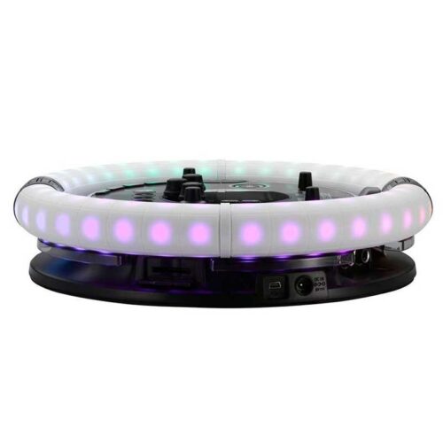 El Ring Controller se comunica con la estación base y los DAW a través de Bluetooth inalámbrico. Cuenta con 96 pads sensibles a la presión y la velocidad para lanzar clips y reproducir sonidos de batería, sonidos de instrumentos y secuencias. Cualquier sonido o frase musical se puede reproducir cromáticamente o mediante cualquiera de las docenas de escalas preestablecidas en cualquier tono. La exclusiva Grip Detection del Ring evita automáticamente la activación accidental de las almohadillas debajo de las manos, mientras que los botones dedicados en la parte superior e inferior del controlador proporcionan controles de transporte (Rec / Play / Stop), así como múltiples efectos que incluyen filtro, retardo, reverberación, y master FX activado / desactivado. El acelerómetro de 3 ejes integrado genera mensajes de control MIDI para alterar sonidos y efectos en tiempo real. La batería interna de iones de litio se carga automáticamente cuando se coloca el anillo en la estación base.